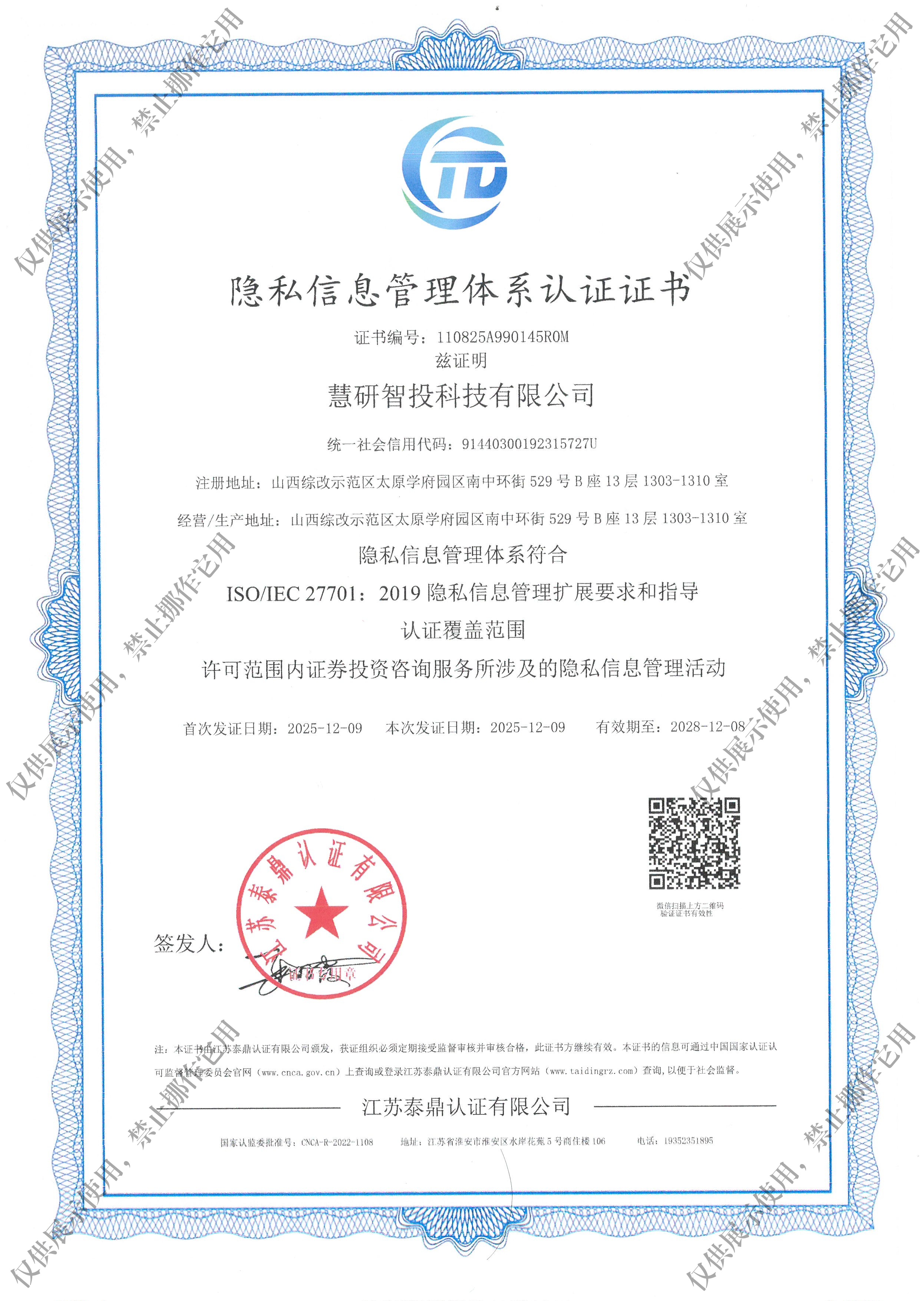 慧研智投科技有限公司声明