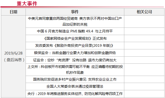 新品认证通过,血制品龙头产线持续扩张! 电改再迈一大步,谁将是最大赢家? 华为或迎解禁,产业链迎来修复契机! 中国6月官方制造业PMI指数为49.4 周一情报精选 特朗普送大礼,2950也成了短期底!